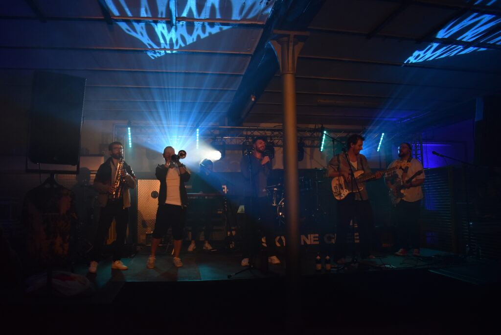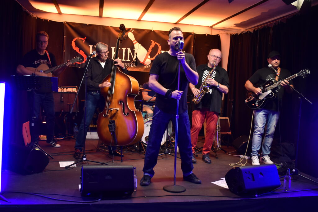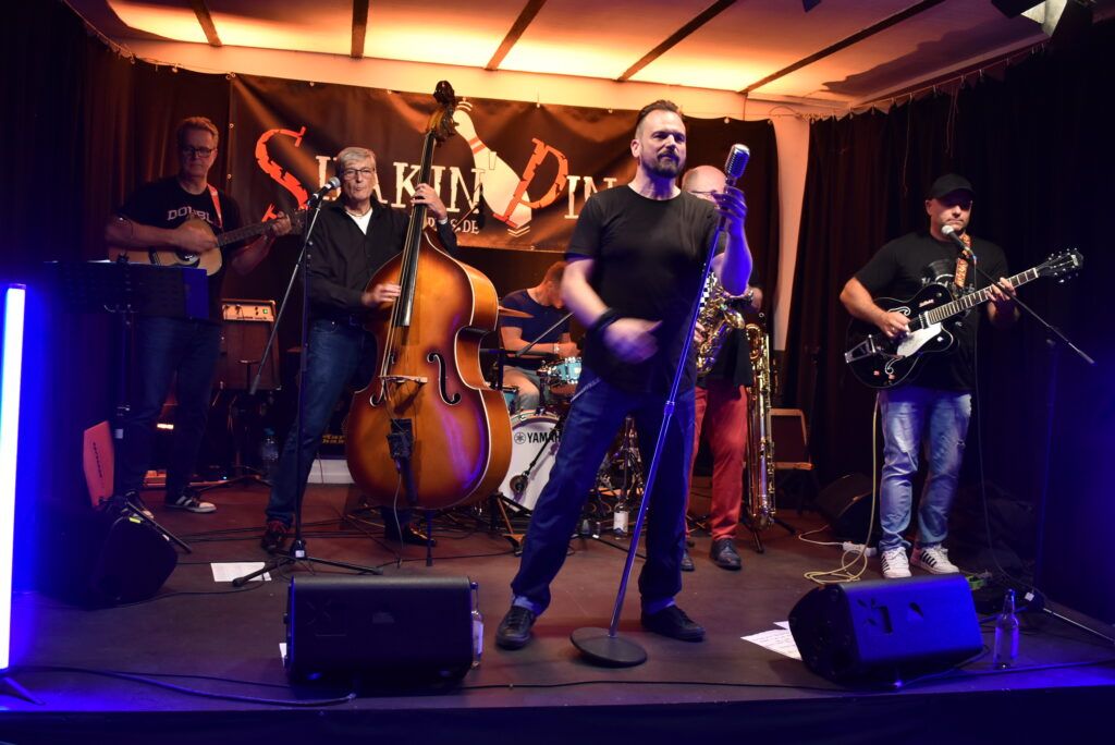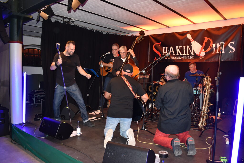 Drinnen drehte sich das Tanzbein derweil weiter. Die „Shaking’ Pins” brachten mit ihrem waschechten Rock’n’Roll nicht allein die Malztennen-Bühne zum Beben, sondern bewegten sich mit ihrem Sänger direkt ins Publikum. Das sorgte für heiße Stimmung – ergänzt durch allerhand kühle Getränke – direkt im gleichen Raum geboten.