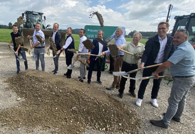 „Wir sind Wild”. So der Schriftzug auf einer tragbaren Informationsfläche beim Spatenstich am Freitagmorgen im Gewerbegebiet Bahnhof Friesenhofen. Wild entschlossen und tatendurstig, wild auf Wachstum. So der erste Eindruck an diesem Platz. Entsteht hier also ab jetzt ein Gewerbegebäude aus Stein, Glas und Stahl? Weit gefehlt! “Max Wild”, 1955 in Berkheim begonnen und seit sechs Jahren in Urlau aktiv, zeigt sich mit seinem ab jetzt entstehenden Firmenstandort Friesenhofen ganz in Holz. 360 Kubikmeter davon erarbeitet die Firma Sohm Holzbautechnik GmbH aus dem vorarlbergischen Alberschwende. Sohm-Geschäftsführer Christian Milz kündigte dabei eine „Holz-Wohlfühl-Atmosphäre” in den neuen Räumlichkeiten an. Sie mit Holz zu erstellen, bedeute Klimaschutz. Es seien nämlich 292 Tonnen Kohlenstoffdioxid (CO2) in den Balken und Wänden gespeichert. Mit einer CO2-freien Energieversorgung aus Sonnenstrom und Wärmepumpe setze Max Wild hier „ein Wahrzeichen”.