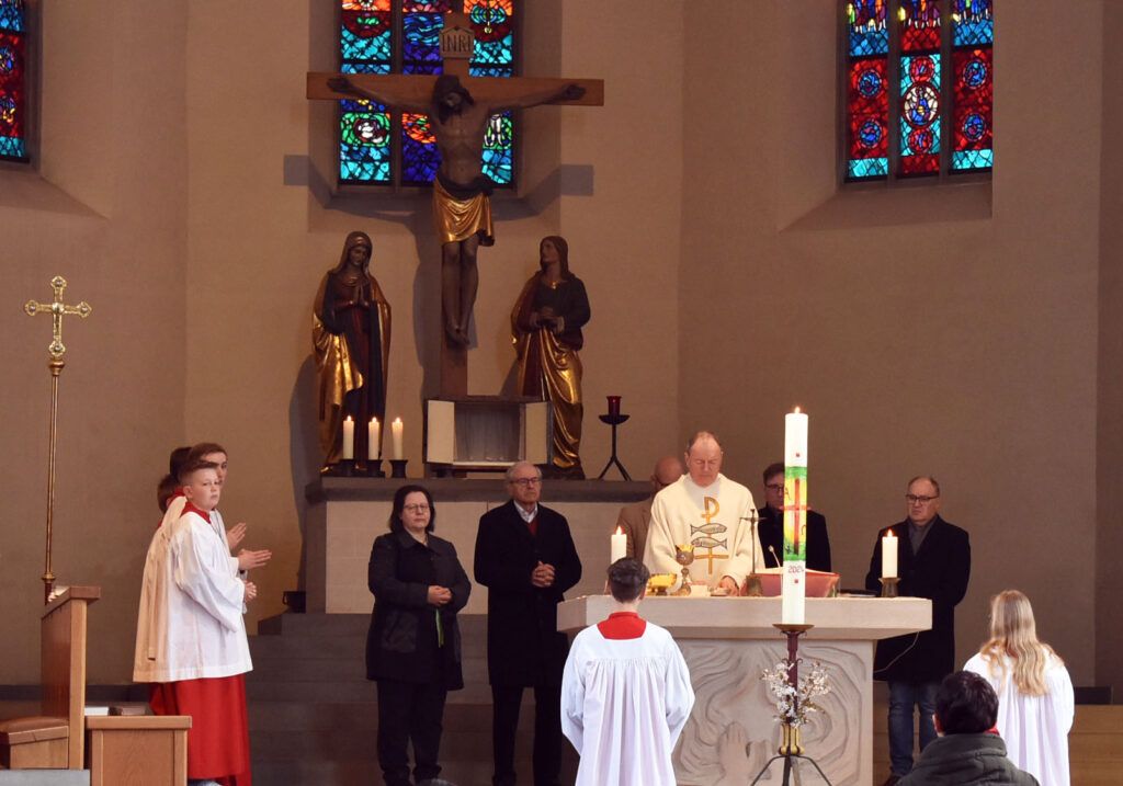 Mit kräftigen Stimmen erklangen Credo, Sanctus-Benedictus und Agnus Dei, dazwischen immer wieder Solo-Parts von Tatjana Göppel, die sich wunderbar ins Gesamtwerk einfügte. „Halleluja – Jesus lebt“, sang die Gemeinde, bevor die zahlreichen Osternester mit Osterspeisen gesegnet wurden. Pfarrer Erzberger dankte Sänger/innen und Musiker/innen, den Lektoren und Ministranten, dem Mesner und allen, die im Hintergrund tätig waren sowie Gabi Hellmann für die schöne Gestaltung der Osterkerze 2024. Er wies auf die Osterkerzenaktion 2024 hin, deren Erlös sozialen Zweck zukommt.