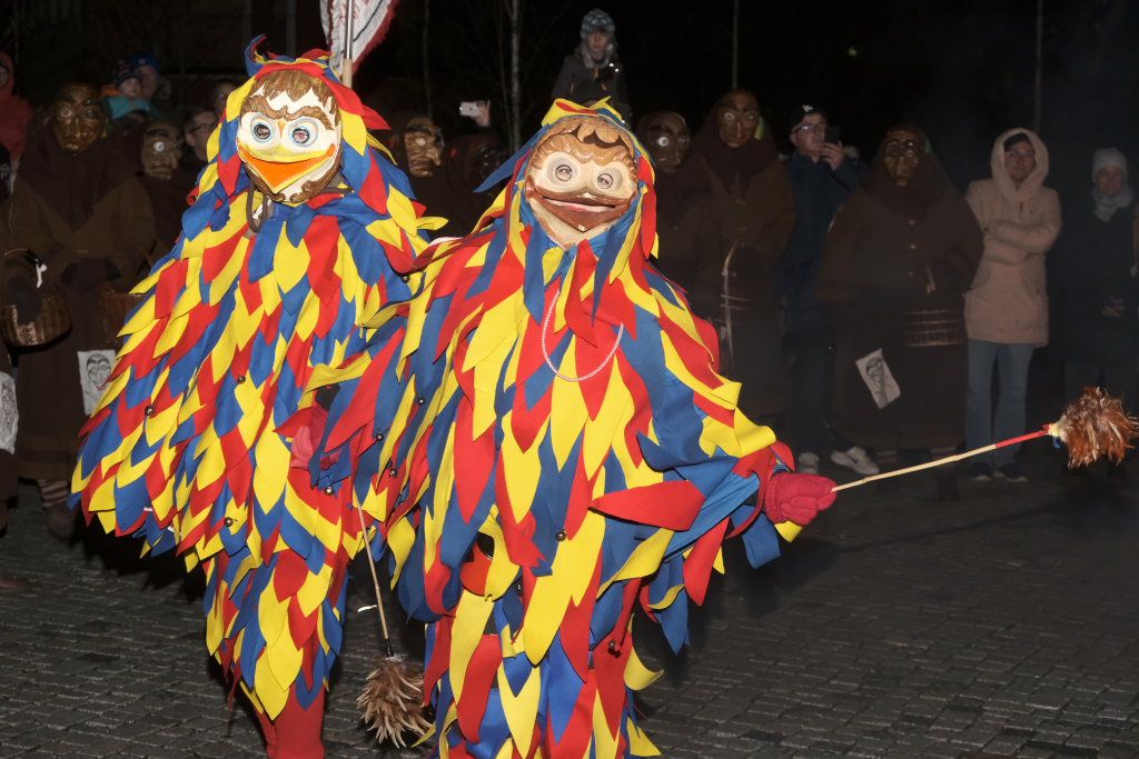 Bad Wurzach – Mit den Glockenschläge von Hells Bells, die sich an das Geläut der St. Verena- Kirchenglocken anschlossen, erfolgte am Samstagabend der Startschuss für die traditionelle Fasnetseröffnung der Bad Wurzacher Narrenzunft D´Riedmeckeler auf dem Klosterplatz.