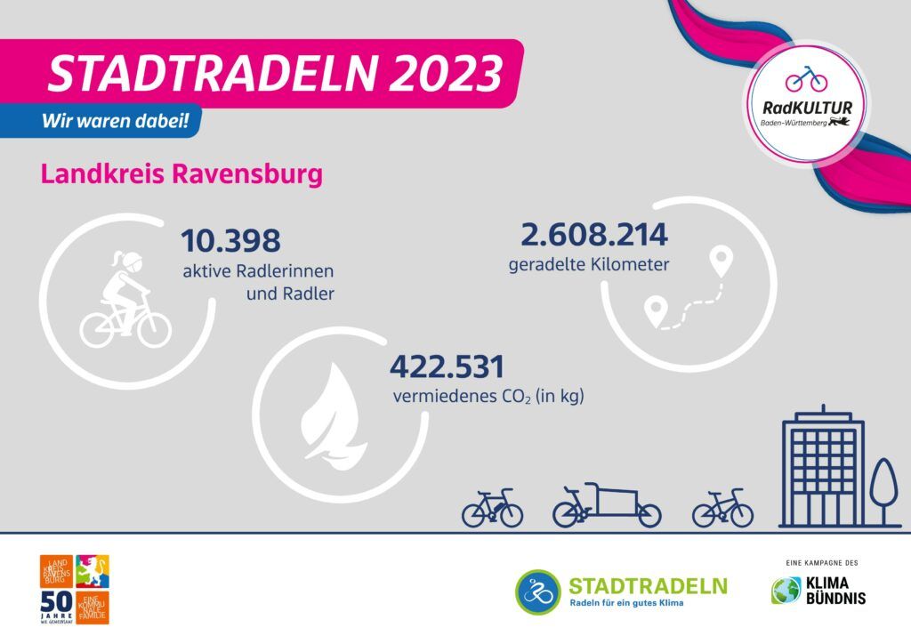 Kreis Ravensburg – Das Ergebnis ist offiziell: Der Landkreis Ravensburg verteidigt beim Stadtradeln auch in diesem Jahr bundesweit seinen starken 3. Platz in der Einwohnerklasse zwischen 100.000 und 499.999 Einwohnern.