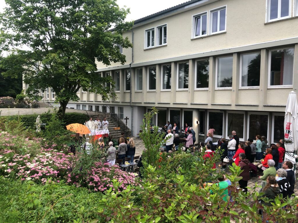 Pater Hubertus hielt den Gottesdienst und gestaltete die Predigt nach dem Fest Maria – Königin des Friedens, den Namenstag des Hauses Regina Pacis, das auch am Sonntag gefeiert wurde. Er bezog sich auf das Evangelium über die Verkündigung des Herrn, als der Erzengel Gabriel als Botschafter der guten Nachricht zu Maria kam. Bereitwillig sagte sie: Mir geschehe nach Deinem Wort. So spannte Pater Hubertus den Bogen fragte die Anwesenden, ob auch WIR bereit sind, das Wort Gottes anzunehmen.