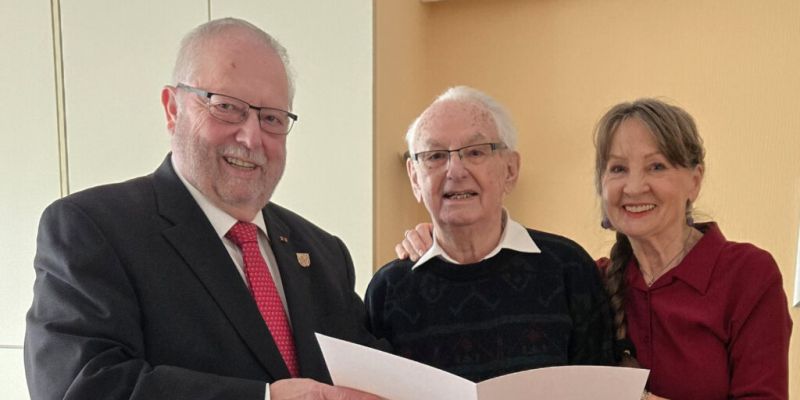 Weingarten – Siegfried Börner hat am 18. Februar 2026 seinen 100. Geburtstag gefeiert. Zu seinem Ehrentag überreichte Stadtrat Wolfgang Pfau in seiner Funktion als ehrenamtlicher Stellvertreter von Weingartens Oberbürgermeister Clemens Moll die Glückwünsche und ein Geschenk der Stadt Weingarten sowie eine Ehrenurkunde des Landes Baden-Württemberg im Namen von Ministerpräsident Winfried Kretschmann.