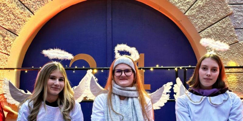 Diese drei Weihnachtsengel hat unsere Leserin Eva Zitzl beim Bad Waldseer Rathaus-Advent gesehen. Sie waren am 5. Dezember im Schlepptau des Nikolauses. In Bad Waldsee geht jeden Tag im Advent am Rathaus um 17.00 Uhr ein Türchen auf und es gibt ein adventliches Programm (am Heiligen Abend um 11.00 Uhr). Das Programm wird täglich von der Bildschirmzeitung in der Ausgabe “Der Waldseer” angekündigt.