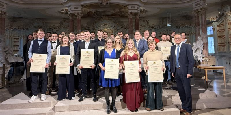Bad Schussenried – Neun Landwirtinnen und 25 Landwirten konnte Regierungspräsident Klaus Tappeser am 24. November zum Meistertitel in ihrem Berufsstand gratulieren. Der Bibliothekssaal des ehemaligen Klosters Schussenried bot einen würdevollen Rahmen für die feierliche Übergabe der Meisterbriefe der neuen Meisterinnen und Meister der Landwirtschaft im Regierungsbezirk Tübingen. Aus dem Bereich der Bildschirmzeitung wurde Felix Maucher aus Bad Wurzach-Metzisweiler geehrt.