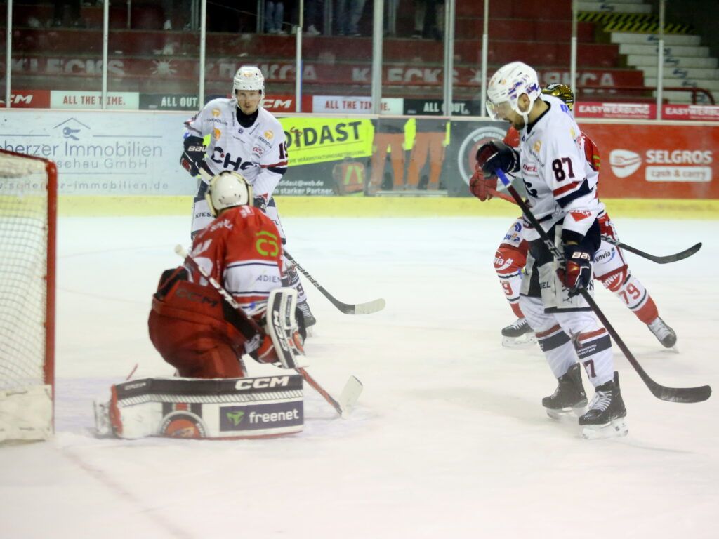 Crimmitschau / Ravensburg – Die Ravensburg Towerstars haben in einem von der ersten bis zur allerletzten Sekunde heiß umkämpften Spiel einen Auswärtssieg in Crimmitschau errungen. Das Team von Bo Subr siegte mit 4:3, der entscheidende Treffer fiel 49 Sekunden vor Ende der Overtime. Dass die Oberschwaben einen zwischenzeitlichen Zwei-Tore-Vorsprung nicht verwalten konnten, war am Ende so gut wie vergessen.