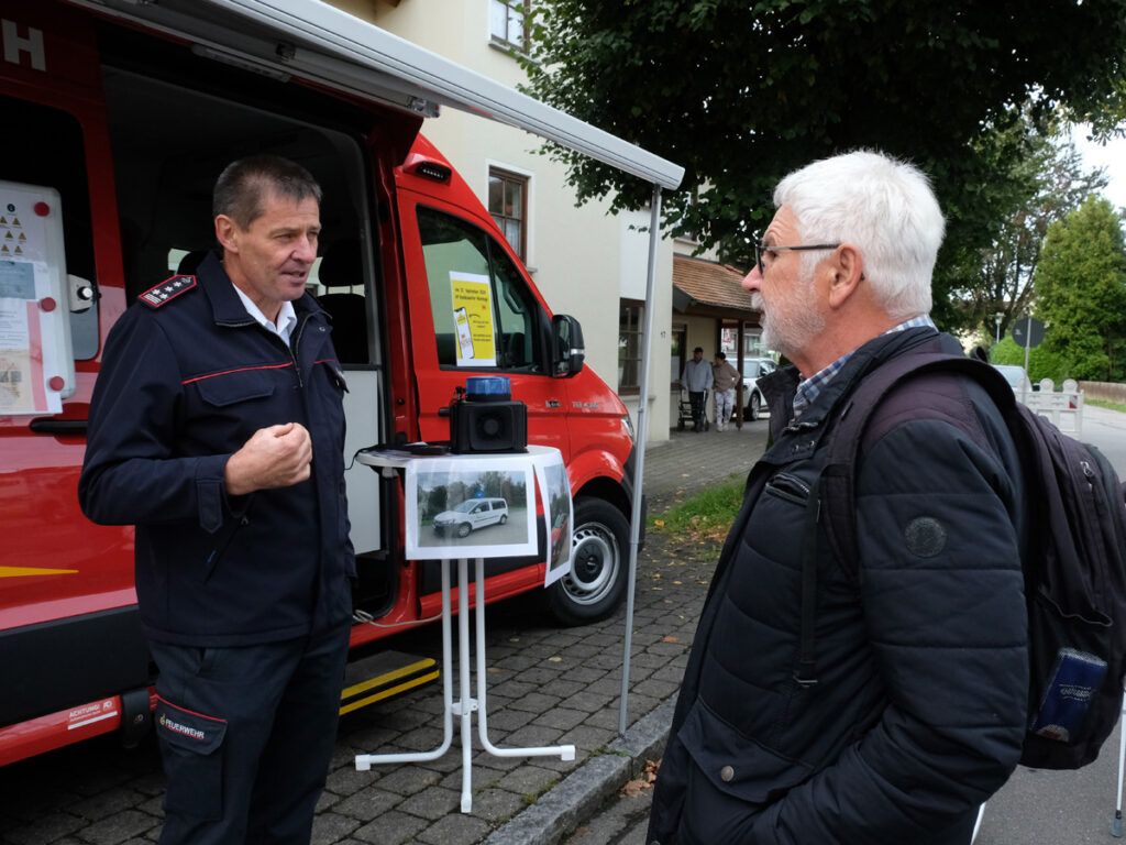 Bad Wuzach – Alljährlich am zweiten Donnerstag im September – in diesem Jahr also am 12. September – findet der bundesweite Warntag als gemeinsame Aktion von Bund., Ländern und Kommunen statt, an dem die Sicherheitseinrichtungen wie Sirenen getestet werden. Feuerwehrkommandant Rolf Butscher nutzte diese Gelegenheit, um auf dem Wochenmarkt das mobile Warngerät MOWACOM der Bad Wurzacher Feuerwehr der Öffentlichkeit vorzustellen.