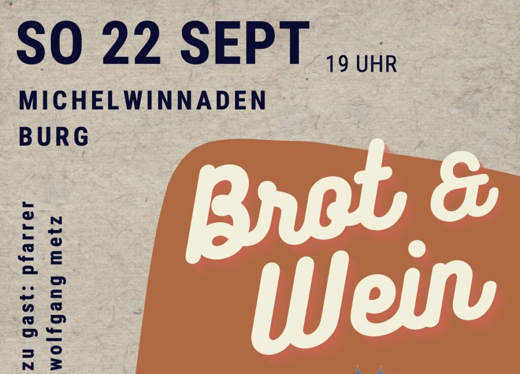 Michelwinnaden (rei) – Die von der Mobilen Jugendseelsorge, der Schwäbischen Bauernschule und der Seelsorgeeinheit Bad Waldsee initiierte Reihe Brot & Wein („Nahrung für Leib und Seele“) gastiert am 22. September in der Burg in Michelwinnaden. Zu Gast ist der bekannte Hochschulseelsorger und Rundfunkpfarrer Wolfgang Metz.