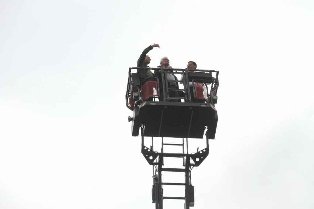 Bad Wurzach (rei) – Am 22. Juni 2018 besuchte Ministerpräsident Winfried Kretschmann das Wurzacher Ried und nahm jenen Standort in Augenschein, an dem jetzt der Naturerlebnis- und Beobachtungsturm gebaut werden soll. Mit der Drehleiter der Bad Wurzacher Feuerwehr ließ er sich hoch in die Lüfte tragen und nahm das Ried von oben in den Blick. Diese demonstrative Bekundung, für die Kretschmann eigens von einem Termin in der Schweiz mit dem Helikopter herbeigeflogen kam, gilt allgemein als Signal dafür, dass das Land den Turm will. Und das Land hat bereits mit dem Kauf eines Ried-Grundstückes auch eine finanzielle Vorleistung erbracht. Die Bilder vom Kretschmann-Besuch 2018 machte unser Reporter Uli Gresser.