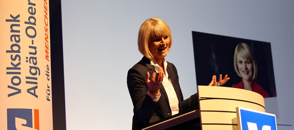 Leutkirch – Gundula Gause begeisterte die Besucher des VBAO-Mitgliederforums am vergangenen Mittwochabend (10.4.) in der Festhalle Leutkirch. 450 Mitglieder der Volksbank Allgäu-Oberschwaben hingen wie gebannt an ihren Lippen.