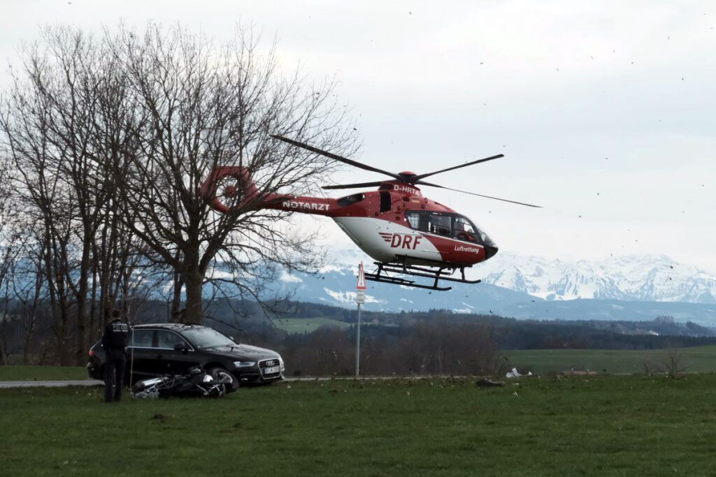 Arnach (rei) – Ein Todesopfer ist nach einem schweren Verkehrsunfall bei Arnach (Stadt Bad Wurzach) zu beklagen. Auf der kurvigen Strecke am Ortsausgang von Arnach Richtung Eintürnen sind am Samstagnachmittag (9.3.) um ca. 15.00 Uhr zwei Motorräder zusammengestoßen: Eines war von Eintürnen her gekommen, das andere von Arnach heraufgefahren. Dabei war der von Eintürnen her Fahrende mit seiner Maschine auf die Gegenfahrbahn geraten. Er wurde bei der Kollision so schwer verletzt, dass er noch an der Unglücksstelle verstarb. Der andere Unfallbeteiligte wurde mit dem Rettungswagen in ein Krankenhaus gebracht. Im Einsatz war neben den örtlichen Rettungskräften auch ein Hubschrauber, der den Unglücksort leer verließ. Nachstehend Einzelheiten aus dem Bericht der Polizei von 18.45 Uhr (9.3.):