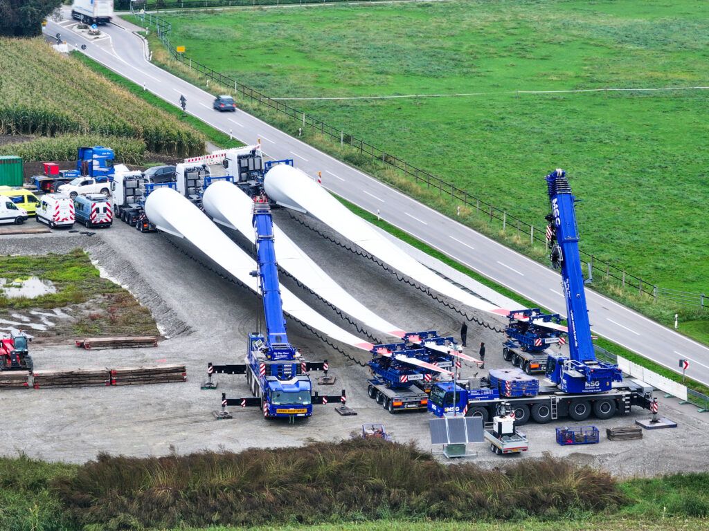 Wolpertswende – Der Windpark Röschenwald (entsteht zwischen zwischen Aulendorf-Zollenreute und Bad Waldsee-Kümmerazhofen) nimmt weiter Gestalt an: In der Nacht vom 25. auf den 26. September sind drei rund 80 Meter lange Rotorblätter bei Mochenwangen eingetroffen. Dies teilten die Technische Werke Schussental mit, die ein Mitbetreiber der Windkraftanlagen sind (45 Prozent Geschäftsanteil laut Wikipedia). In der Pressemitteilung der TWS, die wir ungekürzt veröffentlichen, heißt es weiter: