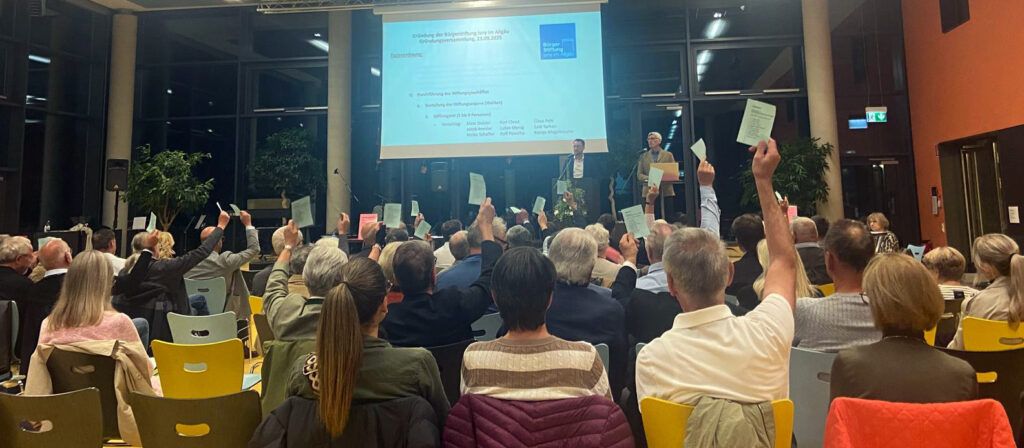 Isny – Dienstagabend, 23. September 2025, ab 19.00 Uhr in der Mensa des Schulzentrums: Gründungsversammlung der Bürgerstiftung Isny. Noch bis einschließlich am gleichen Abend haben ihr 105 Gründungsstifter und Gründungsstifterinnen insgesamt 561.811 Euro Startkapital bereitgestellt. „Ab heute beginnt ein neues Kapitel der Stadtgeschichte für die Ewigkeit”, sagt Bürgermeister Rainer Magenreuter in der (fast) voll besetzten Halle.