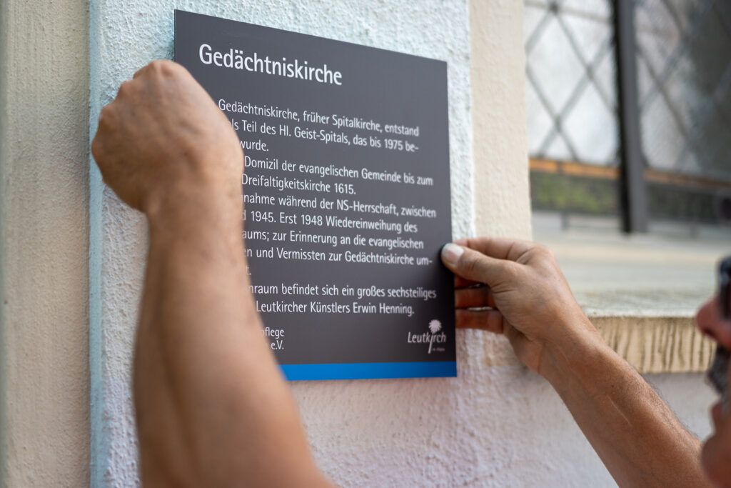 Leutkirch – Die Stadt Leutkirch hat in einem gemeinschaftlichen Projekt mit der Heimatpflege eine neue, einheitliche Beschilderung für bedeutende historische Gebäude in und um die Altstadt umgesetzt. Heute (2.7.) wurde das letzte der mehr als 50 Schilder an der Gedächtniskirche angebracht.