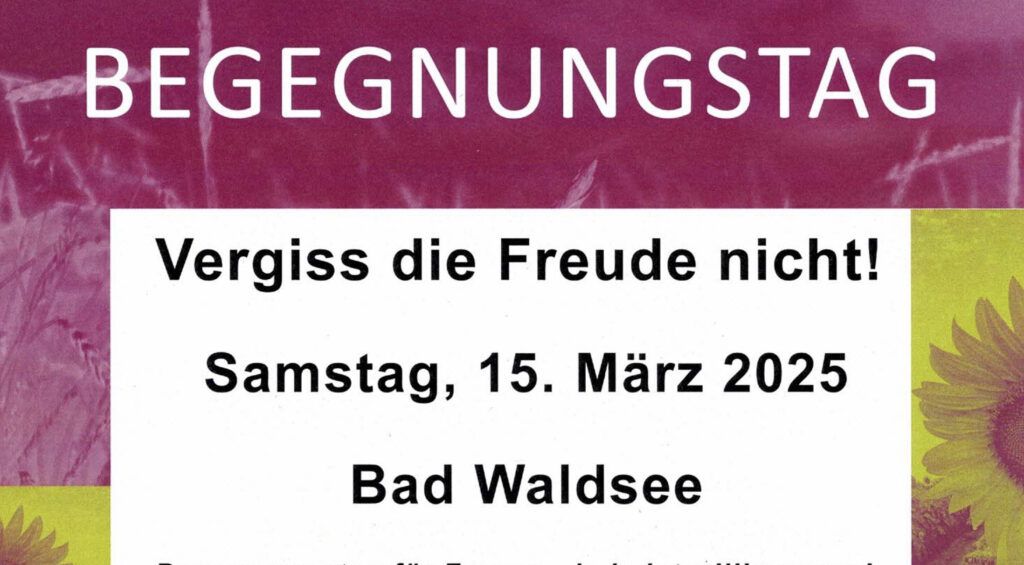 Bad Waldsee – Die Landfrauenvereinigung des Katholischen Deutschen Frauenbunds veranstaltet am Samstag, 15. März, in Bad Waldsee einen Begegnungstag für Frauen. Dazu sind alle Frauen, unabhängig von Alter, Religionszugehörigkeit oder Beruf, herzlich eingeladen.