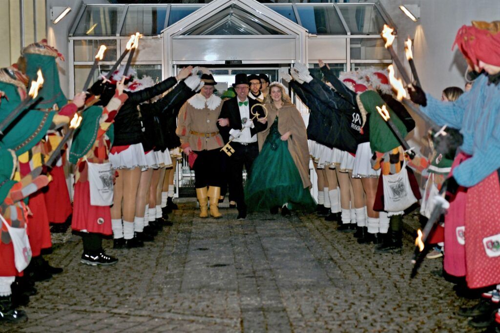 Aitrach – Freitagabend, 28. Februar: Abschied von den Amtsstuben für „den Zirkusdirektor Thomas Kellenberger“ und seinen neuen Gemeinderat. Nun sind die Narren in Aitrach an der Macht. Die zahlreichen Zuschauer vor dem Rathaus mussten nicht lange warten, bis sich der Herrscher of Aitrach in die Öffentlichkeit wagte.