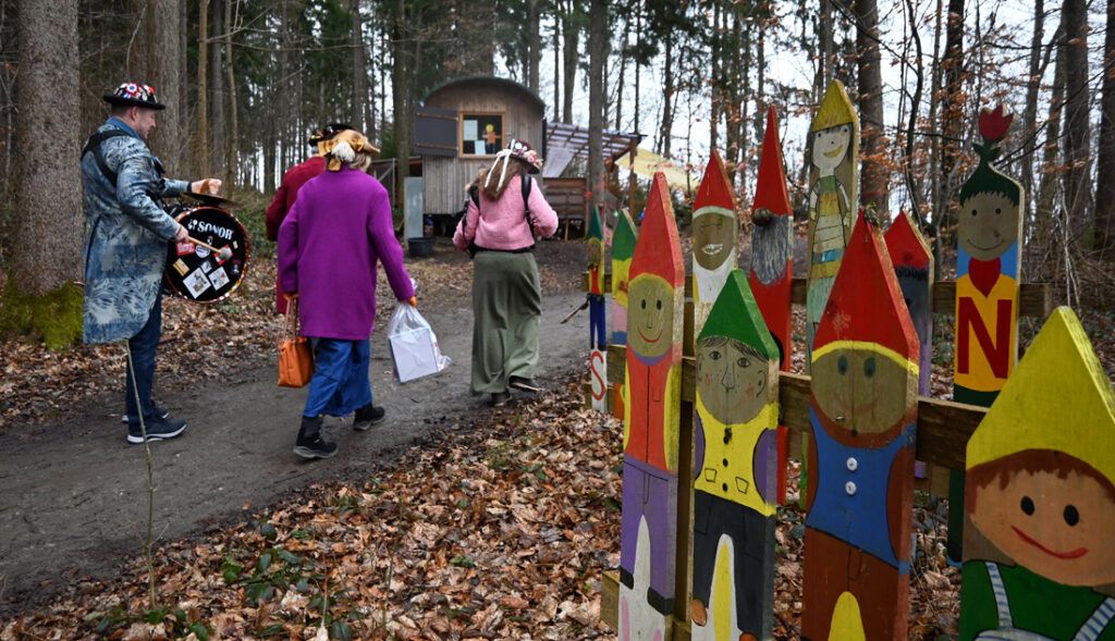 Bad Waldsee – Für den Narrensamen sammeln sie und am „Mittwoch vor der Fasnet“ bringt das Sammlervölkle Frohsinn und Guetsla in die Kindergärten. So auch beim Besuch des Waldkindergartens.