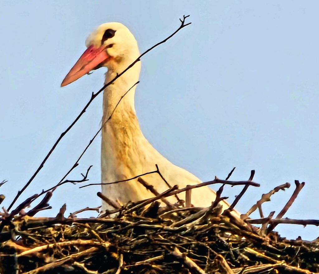 Haisterkirch – “Ich bin wieder da und habe den Frühling mitgebracht” – dies scheint der Storch zu sagen, nachdem er seinen Platz im Storchennest in Haisterkirch wieder eingenommen hat. Gesehen am 1. März von Eva Zitzl.