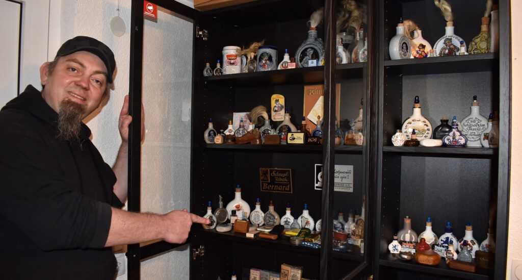 Leutkirch-Grimmelshofen – Er ist ein leidenschaftlicher Schnupfer, ein Schnupftabak-Hersteller mit Herzblut und eigenen Kreationen, und er hat einen kleinen privaten Schatz zu Hause: Einen Schrank voller Schnupftabak-Behältnissen, bis zu 120 Jahre alt. Ein Portrait von Hans Sigg mit bayrischen Wurzeln, viel Schnupf-Erfahrung und eigener Manufaktur bei sich zu Hause.