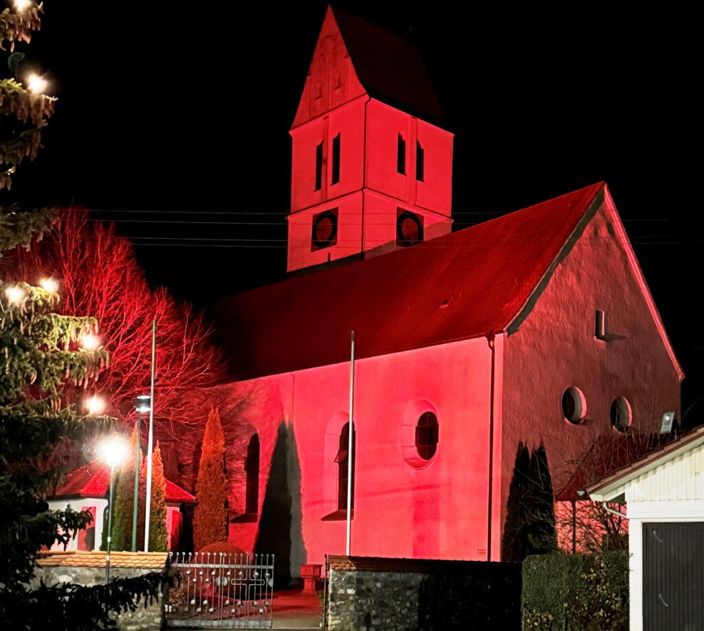 Haisterkirch – Das heute Nacht orange angestrahlte Bad Waldseer Rathaus hat uns daran erinnert, dass vor kurzem die Pfarrkirchen in Haisterkirch und Bad Waldsee rot angestrahlt waren. Warum, das weiß Rudi Martin.