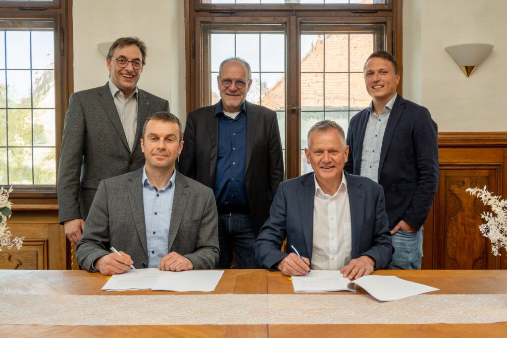 Leutkirch – Oberbürgermeister Hans-Jörg Henle und die Geschäftsführung der Kraftwärmeanlagen GmbH haben den Pachtvertrag für das neue Fernwärmenetz im Stadtgebiet von Leutkirch unterzeichnet.
