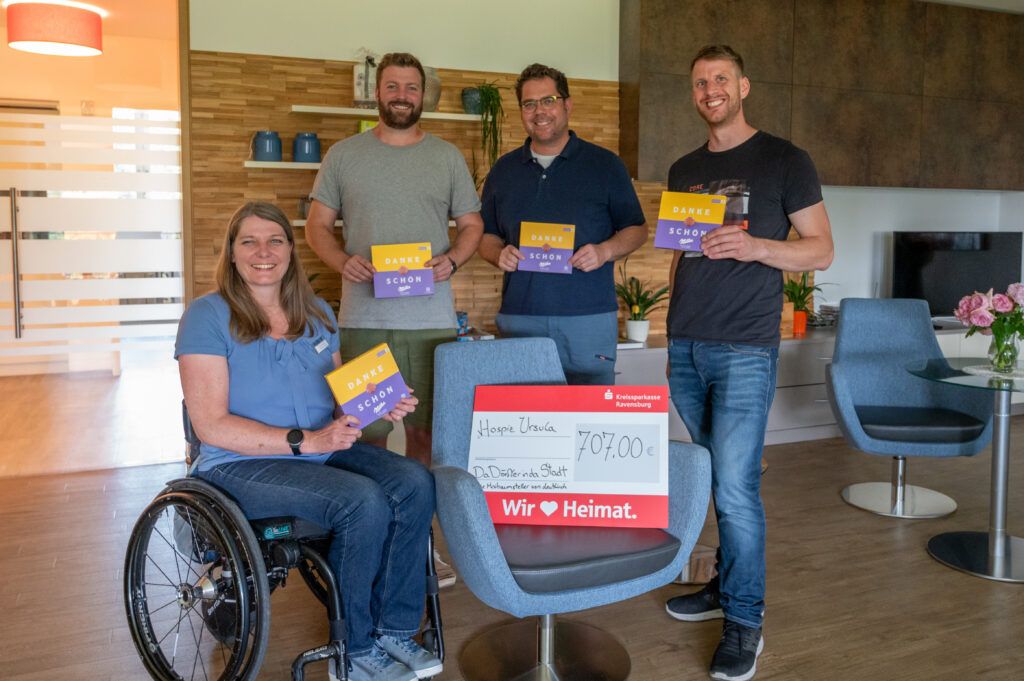 Leutkirch – Die Tradition des Maibaumstellens wurde in Leutkirch durch die „Dörfler in der Stadt“ erfolgreich wiederbelebt. Dank großem ehrenamtlichen Einsatz, vieler Besucher und toller Unterstützung durch Leutkircher Unternehmen, konnte ein ordentlicher Überschuss erzielt werden, der nun dem Leutkircher Hospiz gespendet wurde.
