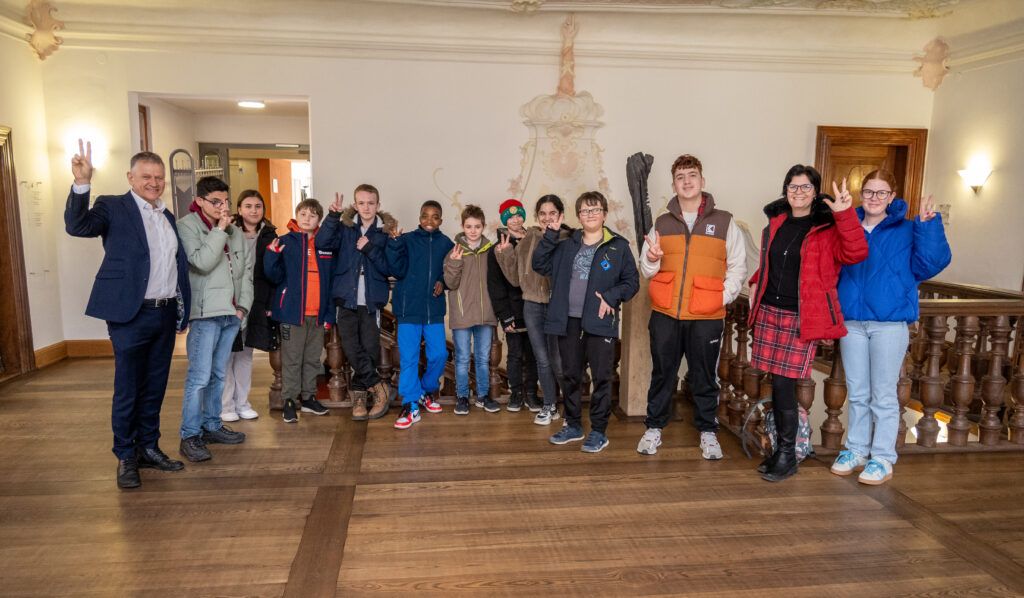 Leutkirch – Schüler der Klassen 6 und 7 der Leutkircher Don-Bosco-Schule besuchten Oberbürgermeister Henle und blickten hinter die Kulissen der Stadtverwaltung.