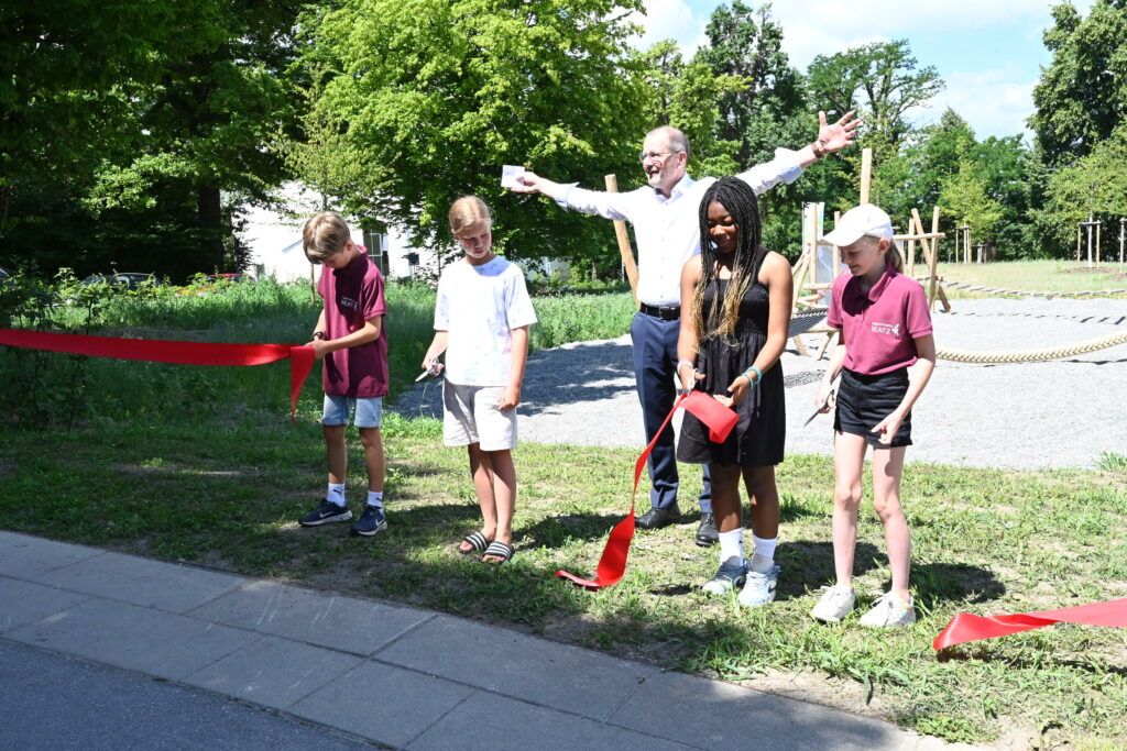 Ravensburg – Als Leni den neuen Spielplatz vor dem St. Elisabethen-Klinikum sieht, zögert sie keine Sekunde. Sie drückt kurz die Hand ihres Papas – dann flitzt sie los. Erst zur Hängebrücke, dann zum Balancierpfad. Ihr Lachen ist ansteckend. „Sie hat sich schon die ganze Zeit auf diesen Moment gefreut“, sagt ihr Vater Florian Maier und schmunzelt. Die beiden sind gemeinsam zur Eröffnung des neuen Spielplatzes am St. Elisabethen-Klinikum gekommen. Besonders die kleine Leni freut sich, dass sie den neuen Ort zum Spielen, zum Entdecken und Kind-Sein als eine der Ersten erleben darf.