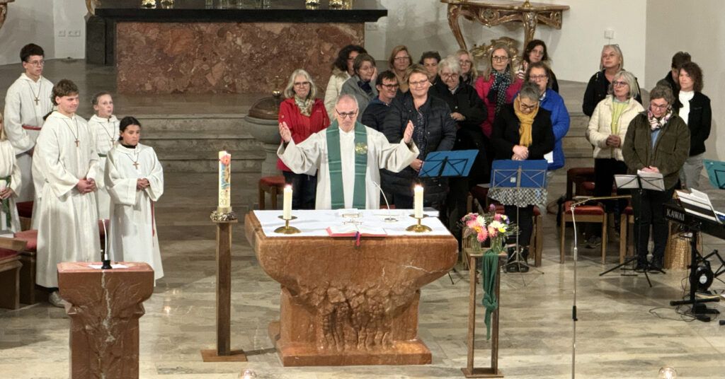 Reute – Bei hochsommerlichen Temperaturen und strahlendem Sonnenschein feierte die Katholische Kirchengemeinde Reute ihr Patrozinium am Sonntag, 29. Juni, mit einem festlichen Open-Air-Gottesdienst im Pfarrgarten. Zahlreiche Gläubige versammelten sich unter freiem Himmel – aber so gut es ging auf den Schattenplätzen, um gemeinsam mit Pfarrer Werner diesen besonderen Tag zu begehen.