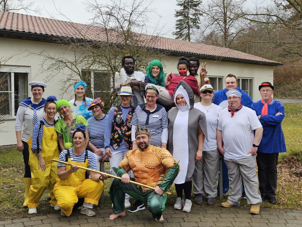 Bad Waldsee – Buntes Fasnetstreiben herrschte auch im Wohnpark am Schloss. Der traditionelle Hausball stand in diesem Jahr unter dem Motto „Wellenreiter und Tiefseetaucher – Abenteuer über und unter Wasser“ und entführte die Gäste in eine bunte Unterwasserwelt.
