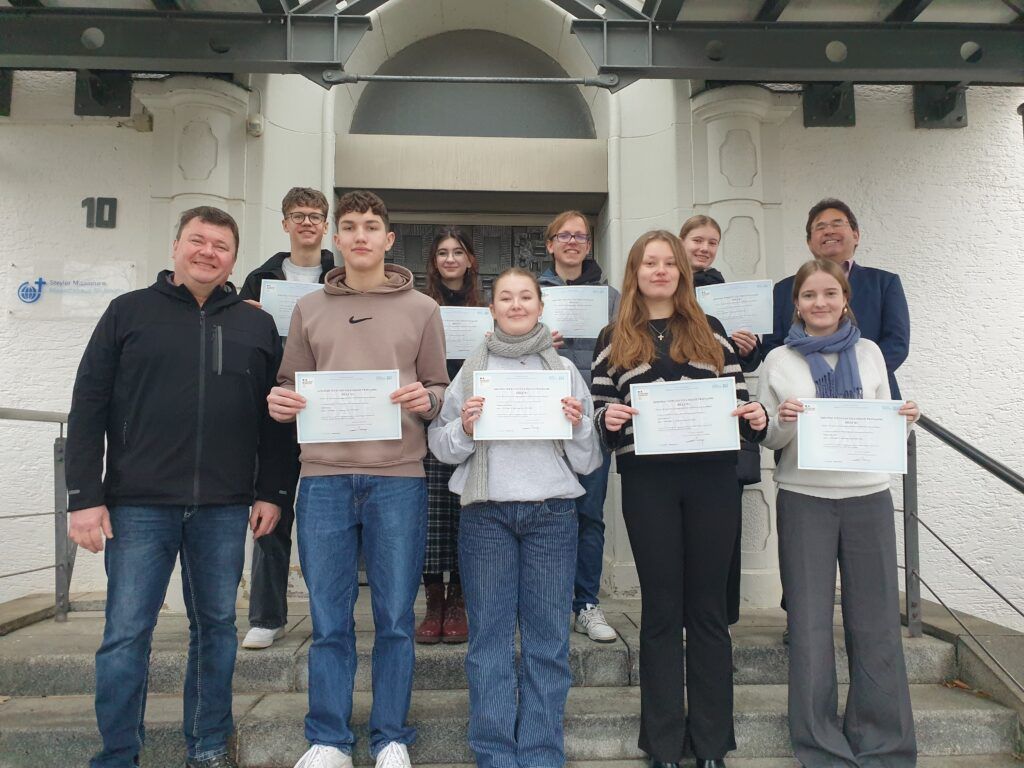 Blönried – Zehn Schülerinnen und Schüler des Studienkollegs durften sich über ihre frisch erworbenen DELF-Zertifikate (Diplôme d’études de langue francaise) auf dem Niveau B1 freuen, welche ihnen durch den stellvertretenden Schulleiter Herr Unglert überreicht wurden.