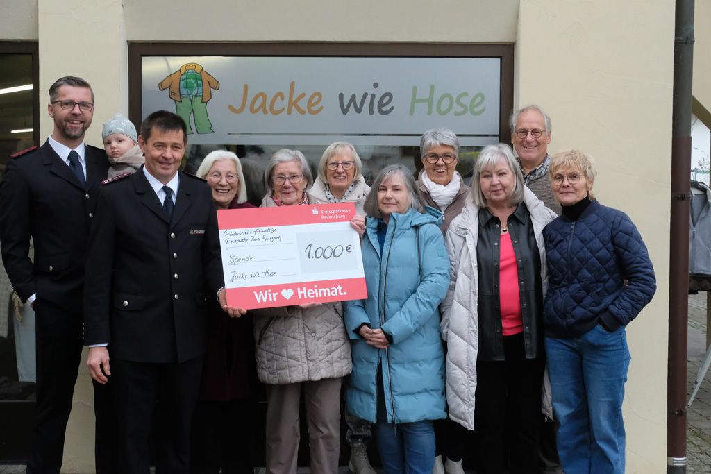 Bad Wurzach – Der Förderverein der Freiwilligen Feuerwehr Bad Wurzach erhielt am gestrigen Donnerstag (21.11.) vom Team des Non-Profit-Second-Hand-Kleiderladens „Jacke wie Hose“ der Diakonie Allgäu-Oberschwaben-Bodensee im Breiteweg einen Scheck in Höhe von 1000 €.