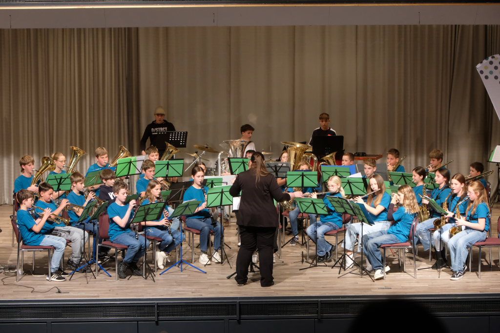 Bad Wurzach – Erstmals als Leiterin der Jugendmusikschule Bad Wurzach begleitete Eva-Maria Oberleiter ihre Schützlinge gemeinsam mit dem Lehrerkollegium durch das sonntagnachmittägliche Kaffeekonzert im vollbesetzten Saal des Torfstechers.