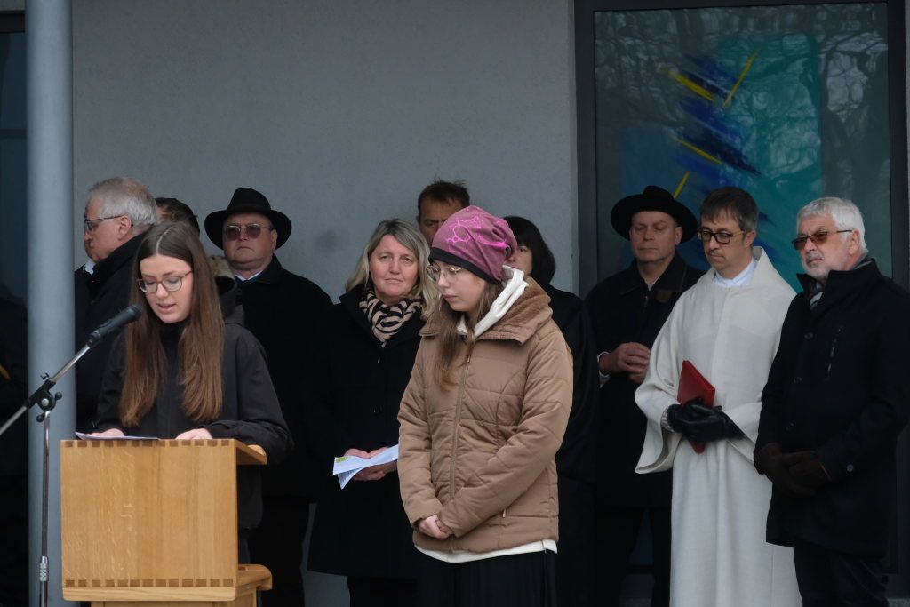Haisterkirch – Recht kühl und windig war es am Sonntagmorgen (17.11.) auf dem Vorplatz der Kirche St. Johannes Baptist in Haisterkirch. Hier hatten sich Mitbürgerinnen und Mitbürger eingefunden nach dem sonntäglichen Gottesdienst, den Pfarrer Ulrich Steck, Prior des Klosters Reute, zelebriert hatte.