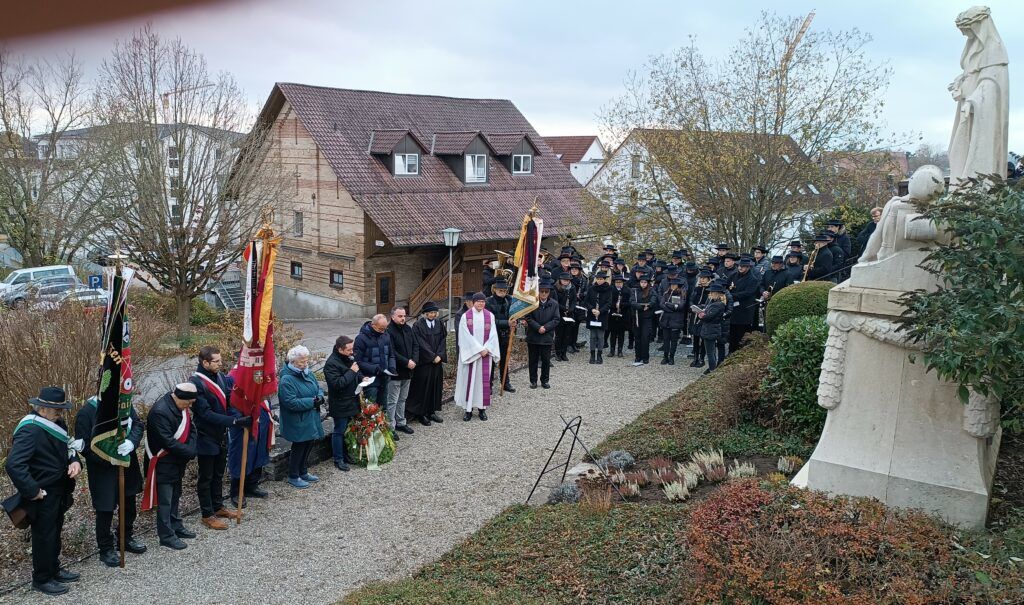 Bad Wurzach – Auf Einladung der Stadtverwaltung und der Kirchen versammelten sich viele Bürger, Abordnungen von Vereinen und Institutionen am Kriegerdenkmal an der Aussegnungshalle, um der Opfer von Kriegen, Terror und Gewalt zu gedenken.