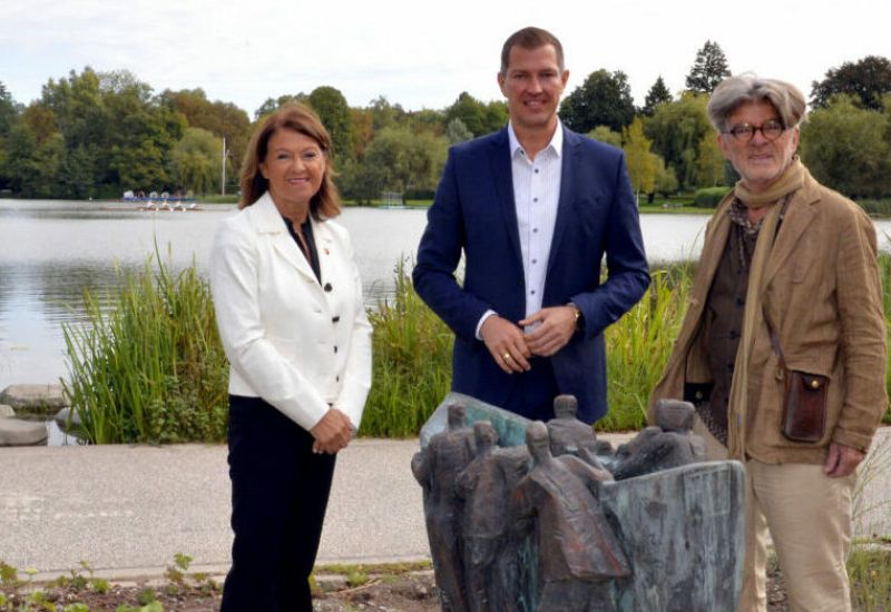 Bad Waldsee – Bad Waldsee hat seit Mittwoch (17.8.) ein neues Kunstwerk im öffentlichen Raum: Vor dem Neuen Rathaus, mit Blickrichtung auf den Stadtsee, wurde die Skulptur „Auf zu neuen Horizonten“ des Künstlers Richard W. Allgaier offiziell an die Stadt übergeben.