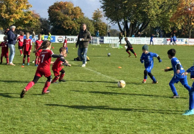Haisterkirch – Am Samstag (18. Oktober 2025) wurde hier auf dem Sportgelände des SV Haisterkirch („Csardas-Arena“) einer letzten Spieltage für den jüngsten Fußballnachwuchs durchgeführt. Beim Start auf den vier speziell eingerichteten Fußball-Feldern war es noch recht frisch aber schon sonnig. Wie schon beim Frühjahrsturnier konnte erneut ein rekordverdächtiger Besucherzuspruch registrierwerden. Die Parkmöglichkeiten rund um die Gemeindehalle waren schon vor Beginn um 10.00 Uhr voll belegt.