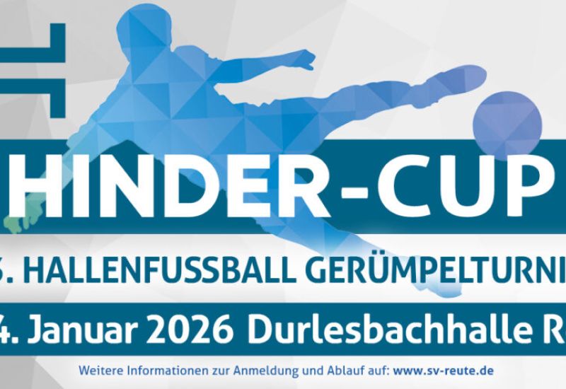 Reute – Der SV Reute veranstaltet am 3. und 4.Januar 2026 in der Reutener Durlesbachhalle zum 33.Mal das traditionelle Hallenfußball-Gerümpelturnier für Freizeitmannschaften um den Hinder-Cup.