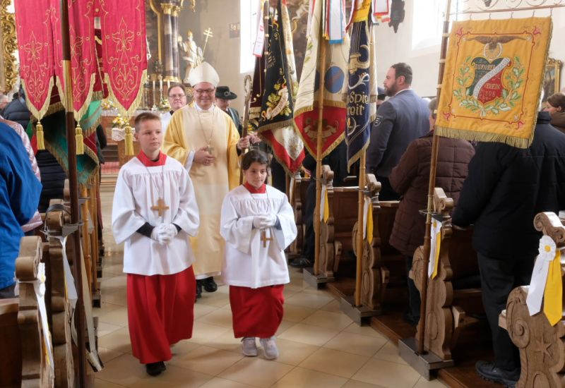 Eggmannsried – Mit einem feierlichen Pontifikalamt, zelebriert von Weihbischof Dr. Gerhard Schneider, einer der Feier angemessenen Anzahl von Konzelebranten, einem Fahneneinzug der Vereine sowie mit Musikkapelle und Kirchenchor beging Eggmannsried sein Jubiläumskirchweihfest „300 Jahre“.