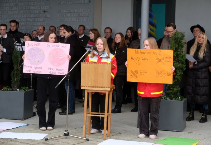 Bad Wurzach – Alljährlich wird in ganz Deutschland und selbstverständlich auch in Bad Wurzach am Volkstrauertag der Opfer von Kriegen und Gewalt gedacht. Bürgermeisterin Alexandra Scherer tat dies in diesem Jahr gemeinsam mit drei Schülerinnen der 9. Klasse der Realschule, Pfarrerin Silke Kuczera von der evangelischen und Pastoralreferentin Anna Katharina Merk von der katholischen Kirchengemeinde sowie der Stadtkapelle und dem Liederkranz Chorioso, welche der Gedenkfeier am vergangenen Sonnta…