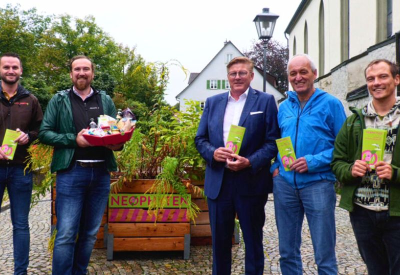 Leutkirch / Wangen – Mit großem Erfolg hat die Neophyten-Wanderausstellung in den vergangenen Wochen den Platz der Dreifaltigkeitskirche in Leutkirch belebt – nun macht sie sich auf den Weg nach Wangen. Bevor die Station gewechselt wurde, hieß es: Abschied feiern. Gemeinsam mit Förderern und Partnern wurde die Ausstellung noch einmal gewürdigt.