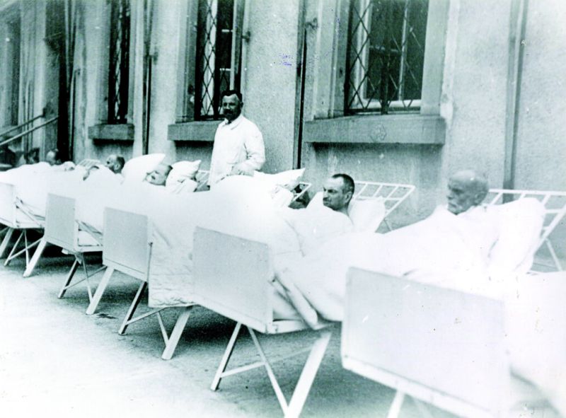Patienten in Betten auf der Veranda, frühes 20. Jahrhundert. Fotos: ZfP Südwürttemberg