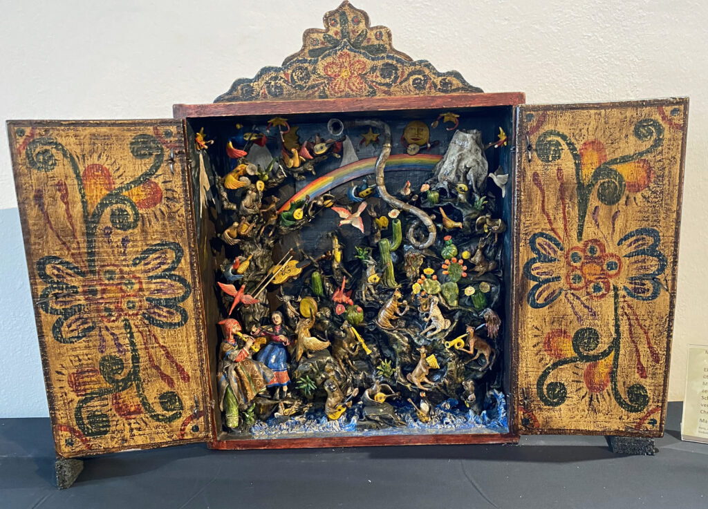 Die Frage an die freundliche Dame an der Kasse nach dem im Flyer erwähnten Katalog ergibt, dass dieser noch nicht zur Verfügung steht. Dafür erscheint in Bälde ein Buch zur Ausstellung. Aber glücklicherweise ist die Kuratorin im Haus und zu einem Gespräch bereit. Die noch praktizierende Psychotherapeutin, die im Lauf des Jahres ihren 80. Geburtstag feiern wird, stammt aus einer Sammlerfamilie. Der quirligen Schussenriederin sind die kunsthistorischen Aspekte weniger wichtig, sie betont vor allem den kulturgeschichtlichen und ethnologischen Aspekt.