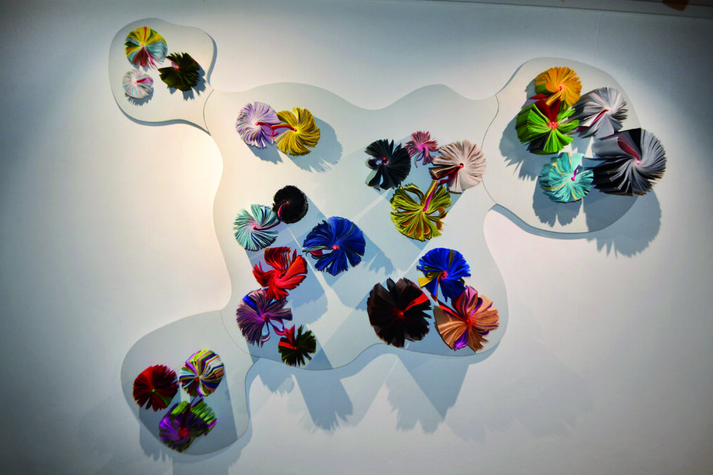 „Es passiert viel in der Kunst“, freut sich Amanda Knapp über ihren Soloauftritt. „Es ist eine spannende Angelegenheit.“ Gezeigt werden Werke aus Stahl, Stein, Holz, Bronze, Spezialgips und Papier, häufig in Form von umgearbeiteten Büchern, die aufgefächert und Seite für Seite eingefärbt den Betrachter staunen lassen. „Ich arbeite in Geschichten oder Zyklen, jedes Stück ist ein Unikat“, erklärt die Künstlerin.
