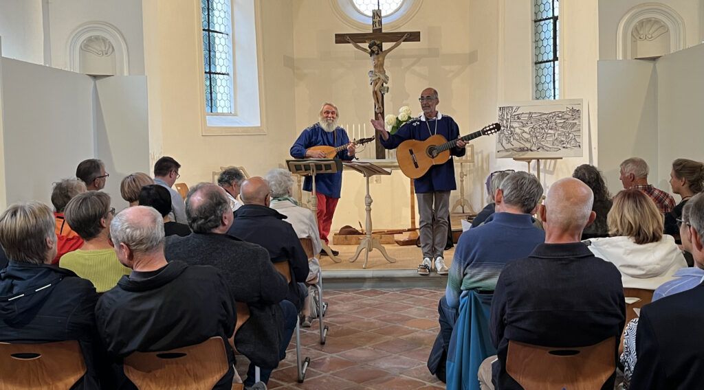 Bad Wurzach – Die oberschwäbischen Barden Bernhard „Barny“ Bitterwolf und Michael Skuppin singen, musizieren und erzählen am Freitag, 19. September, 20.00 Uhr in äußerst unterhaltsamer Weise im Leprosenhaus in Bad Wurzach. Quer durch die Jahrhunderte hat sich die Mehrheit des Volkes, sprich die Bauern, die Sorgen, Nöte und Ängste, aber auch die Freuden des Alltags in Liedern von der Seele gesungen. Entstanden sind Liedtexte, die in teils drastischen Farben von einem beschwerlichen Leben erzählen, die aber auch Mut machen, sich den Herausforderungen des Daseins zu stellen. Besonders die Zeiten des Bauernkrieges waren von innerer und äußerer Unruhe geprägt – ähnlich wie in den heutigen Tagen.