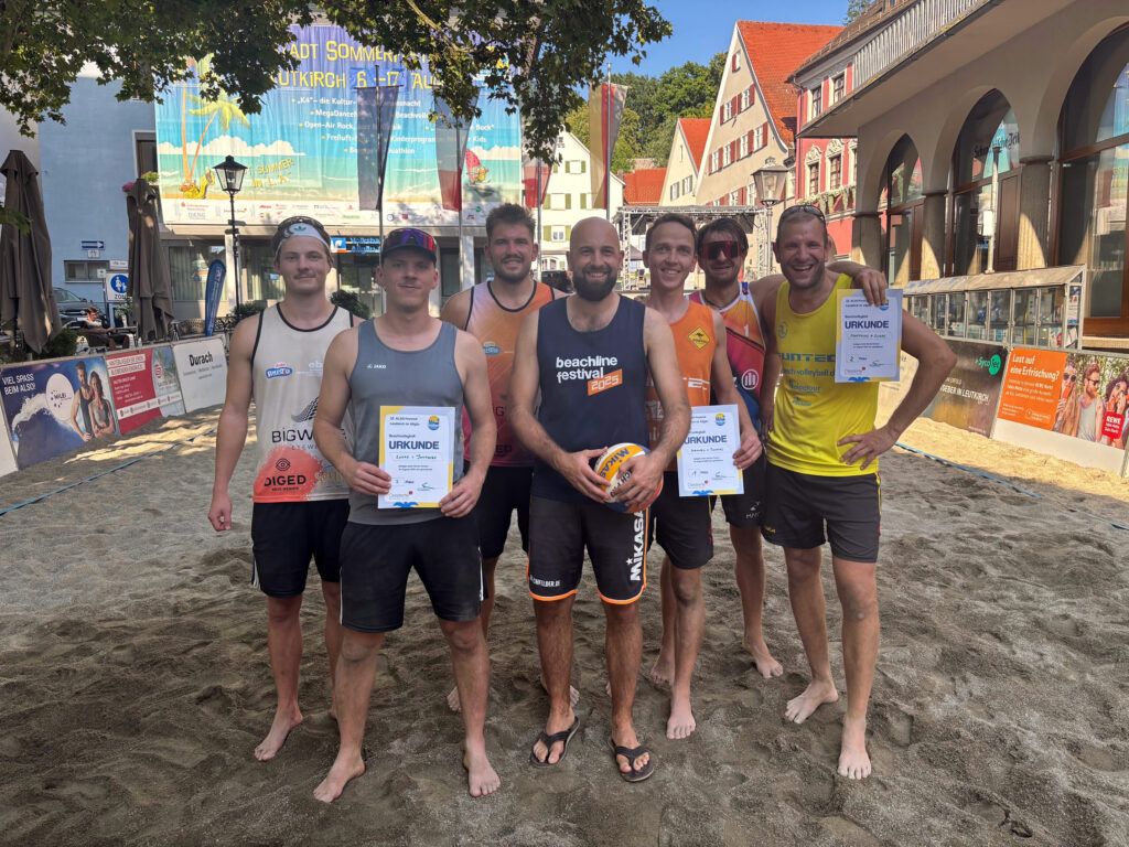 Leutkirch – Bei strahlendem Sommerwetter fand am Samstag, 9. August, das Herren-Beachvolleyball-Turnier im Rahmen des Altstadt-Sommer-Festivals (ALSO) statt. Die Zuschauer erlebten spannende Matches der aktiven Beachvolleyballer und großartige Stimmung auf dem Kornhausplatz. Es siegten Thomas Thalheimer und Manuel Menig.