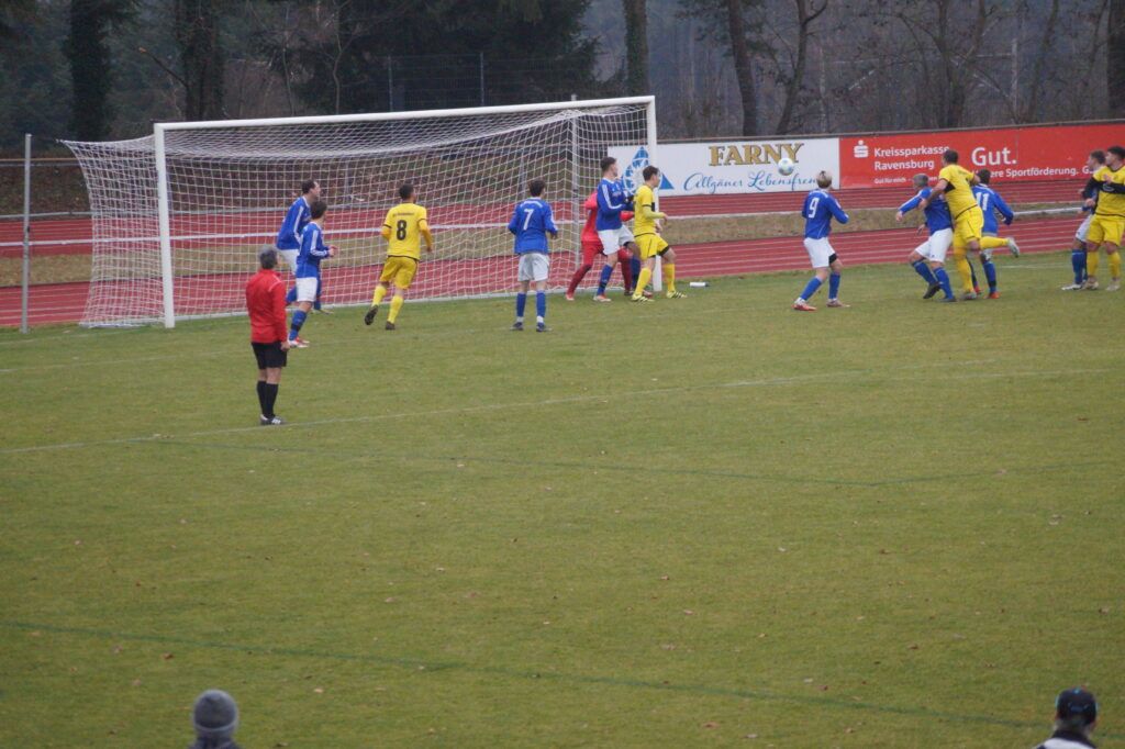 Aulendorf – Die Gäste kamen gleich hellwach aus der Kabine und hätten bereits in der ersten Spielminute beinahe die Führung erzielt, doch ein Kopfball von Brändle ging knapp neben das Tor. In der 6. Spielminute war es dann so weit und die Gäste gingen mit 1:0 in Führung. Zuerst konnte der SGA-Torhüter Sebastian Ludwig einen Ball von Mütz noch entschärfen doch der Ball prallte vom Fuß von David Gaus unglücklich ins eigene Tor.