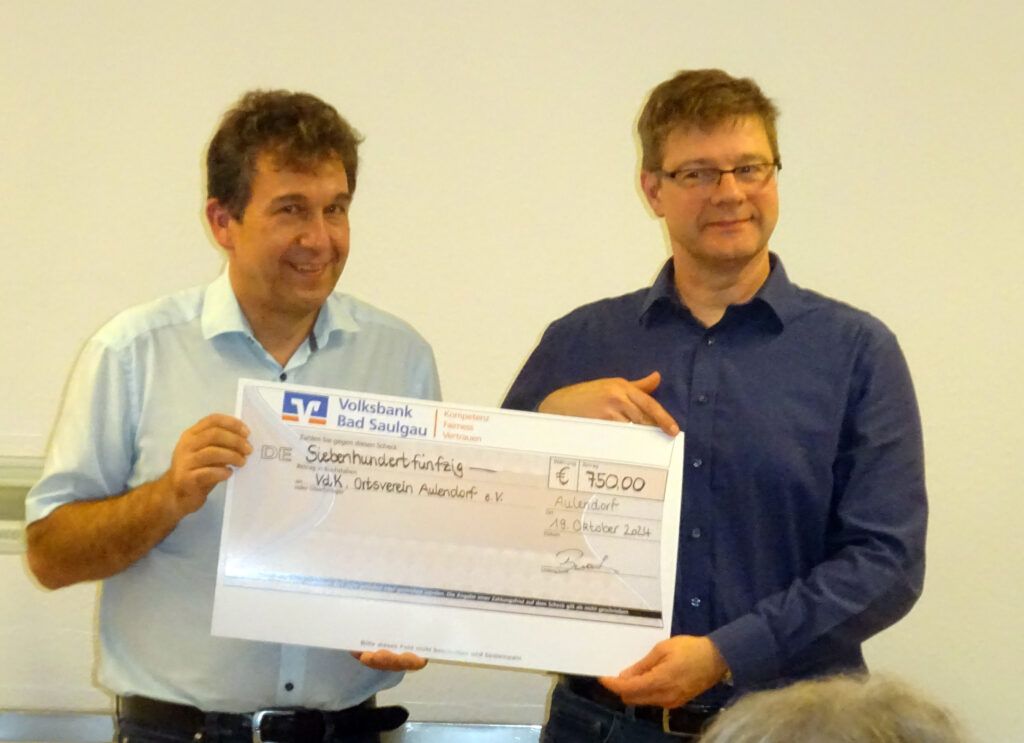 Aulendorf – Seit 1948 gibt es den VdK-Ortsverband in Aulendorf. Aus diesem Anlass überreichte Bürgermeister Burth einen symbolischen Scheck im Wert von 750 Euro und dankte dem örtlichen Sozialverband für dessen wichtiges Engagement.