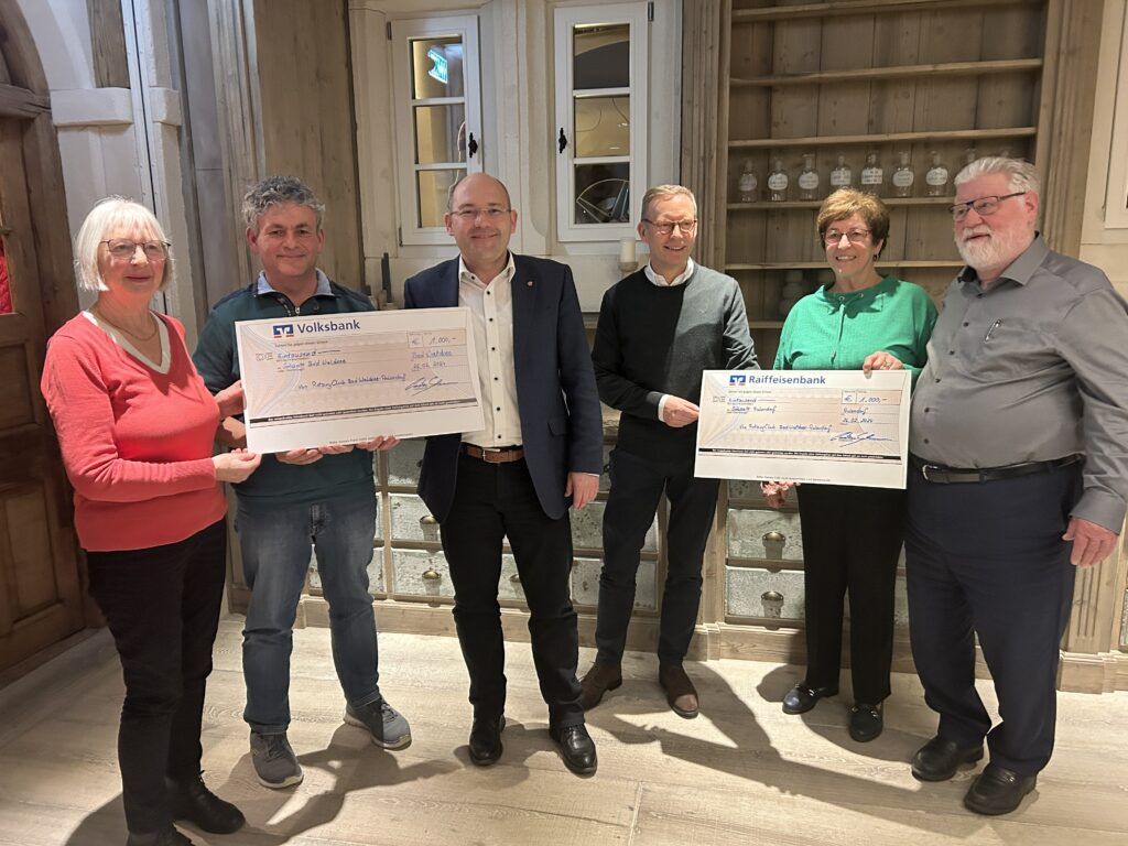Aulendorf-Bad Waldsee – Mit einer Spende in Höhe von je 1000 Euro unterstützt der Rotary-Club Bad Waldsee-Aulendorf das große soziale Engagement der Kolpingfamilien in Bad Waldsee und Aulendorf bei deren Projekt „Solisatt“. Die Kolpingfamilien betreiben im Rahmen ihres sozialen Wirkens seit vielen Jahren ehrenamtlich die „Sozialläden Solisatt“, in welchen sie Lebensmittel vor der Vernichtung bewahren und sie an Bedürftige weitergeben.