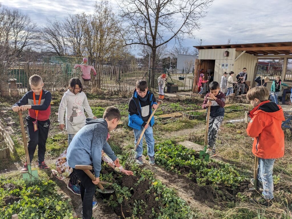 Bad Waldsee – Auch wenn es kalendarisch noch tiefster Winter ist, so trauten sich doch die ersten Grundschüler zum ersten Arbeitseinsatz in den Schulgarten von und mit Schulgärtnerin Beate Weber.